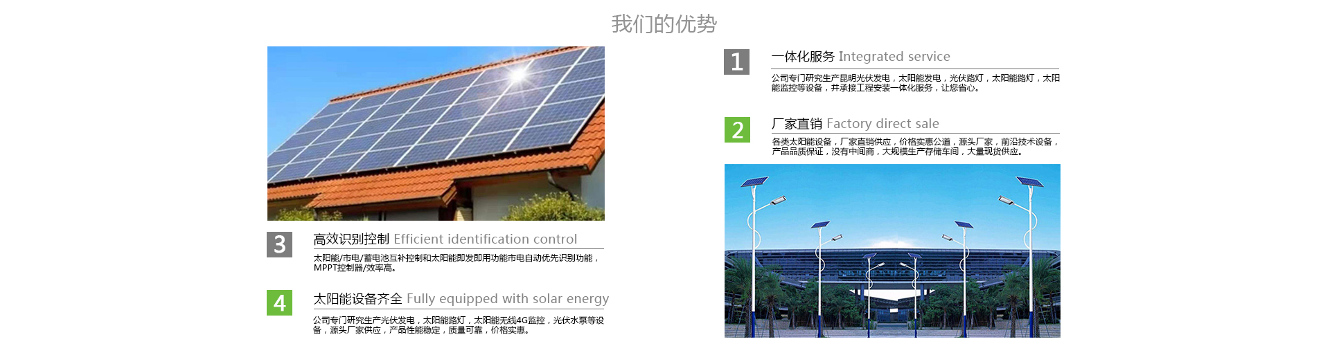 云南坦碩商貿(mào)有限公司是一家致力于光伏新能源發(fā)電系統(tǒng)的研發(fā)、設(shè)計(jì)、生產(chǎn)、銷售、安裝、維護(hù)于一體的綜合性能源企業(yè)。“新能源”是新世紀(jì)經(jīng)濟(jì)發(fā)展中具前瞻性和決定力的科技能源產(chǎn)業(yè)之一,光伏太陽能是一種真正清潔、不枯竭的新能源,取之不盡,用之不竭。具有可靠、無噪音、無污染、制約少,故障率低,維護(hù)簡便等優(yōu)點(diǎn)。我公司秉承:以質(zhì)量求生存,以科技創(chuàng)新求發(fā)展,以現(xiàn)代化管理求效益、的管理體系,堅(jiān)持“出精品設(shè)計(jì)造產(chǎn)品,創(chuàng)工程,守良好信譽(yù)”的質(zhì)量方針,以標(biāo)準(zhǔn)的服務(wù),優(yōu)良的服務(wù)品質(zhì)和創(chuàng)新技術(shù)的應(yīng)用為客戶提供有針對性的、系統(tǒng)解決方案來贏得客戶的放心與認(rèn)可。我公司主要研發(fā)、設(shè)計(jì)、生產(chǎn)銷售的產(chǎn)品有:各種規(guī)格型號的并網(wǎng)、離網(wǎng)光伏發(fā)電、以及家用光伏發(fā)電系統(tǒng)和光伏發(fā)電揚(yáng)水系統(tǒng),光伏抽水灌溉系統(tǒng)、光伏溫室烘干系統(tǒng)。我公司生產(chǎn)的光伏發(fā)電系統(tǒng)功率大小可調(diào)控,可以滿足各個(gè)領(lǐng)域的用電需求,如:高能耗大型企業(yè)單位,礦山、雷達(dá)站、景區(qū)索道、電動游樂觀光船...